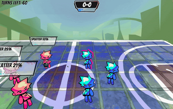 Premise: A turn-based twist on Basketball. Shoot paint bombs into hoops and splatter the court with bright color!
