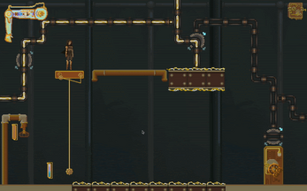 - Puzzle Pieces (pipes with gears): These have 3 possible orientations and can be charged with up to 3 energy units. Adding energy to them rotates the corresponding pipe 90° clockwise. Taking energy from a puzzle gear rotates it 90° counterclockwise. In other words, click and hold the left button to rotate them to the left, and click and hold the right button to rotate to the right.